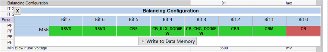 问题上的措辞有点令人困惑、但当前根据屏幕截图、用户禁用了 CB (Bit0)电池平衡(0)。 通常此寄存器在1时启用、您可以参阅下面第154节(第15.2.1.16节"平衡配置")以查看此寄存器在下面的内容。