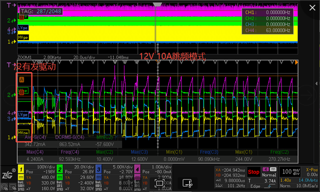 在使用UC2844时遇到如下问题,测试到的波形及问题描述如下:
