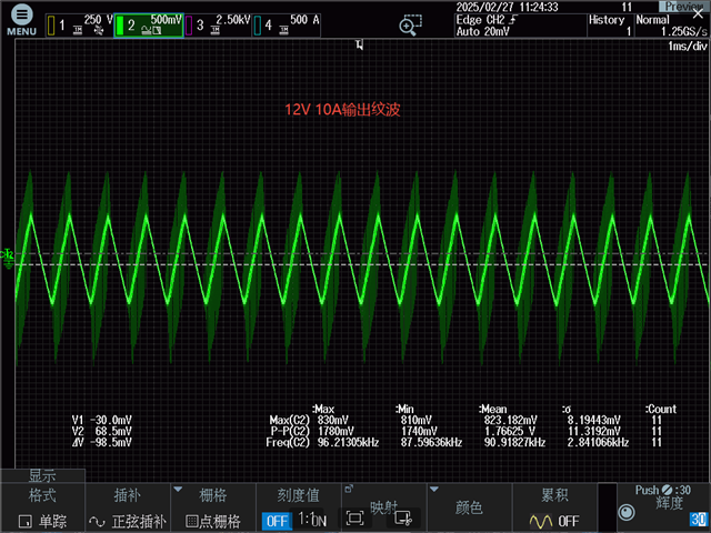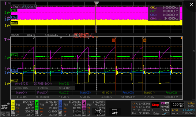 参数如下:变压器感量双绕组串联后0.55mH,工作频率设计是90KHz,5个sence电阻是2R,2R,2R,2R,1.5R。
