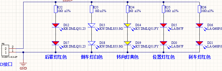 分别2颗一串连再并接,查LED:VF(典型值)为:2.32V,2.95V,2.95V,2.15V,2.25V