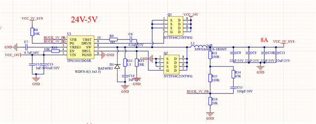 转换器,如果测量位置与调节点不同,则调节传感位置的输出,您可能会看到PCB轨迹导致的下降。 您可以提供布局,SW节点波形,VFB波形吗? 我还注意到C14比我们一般预期的要大。