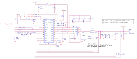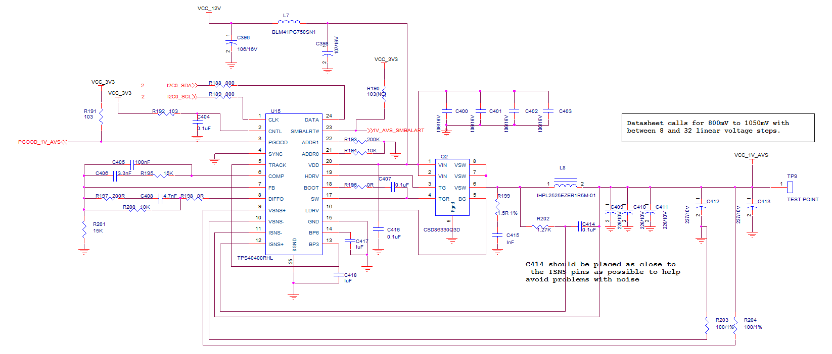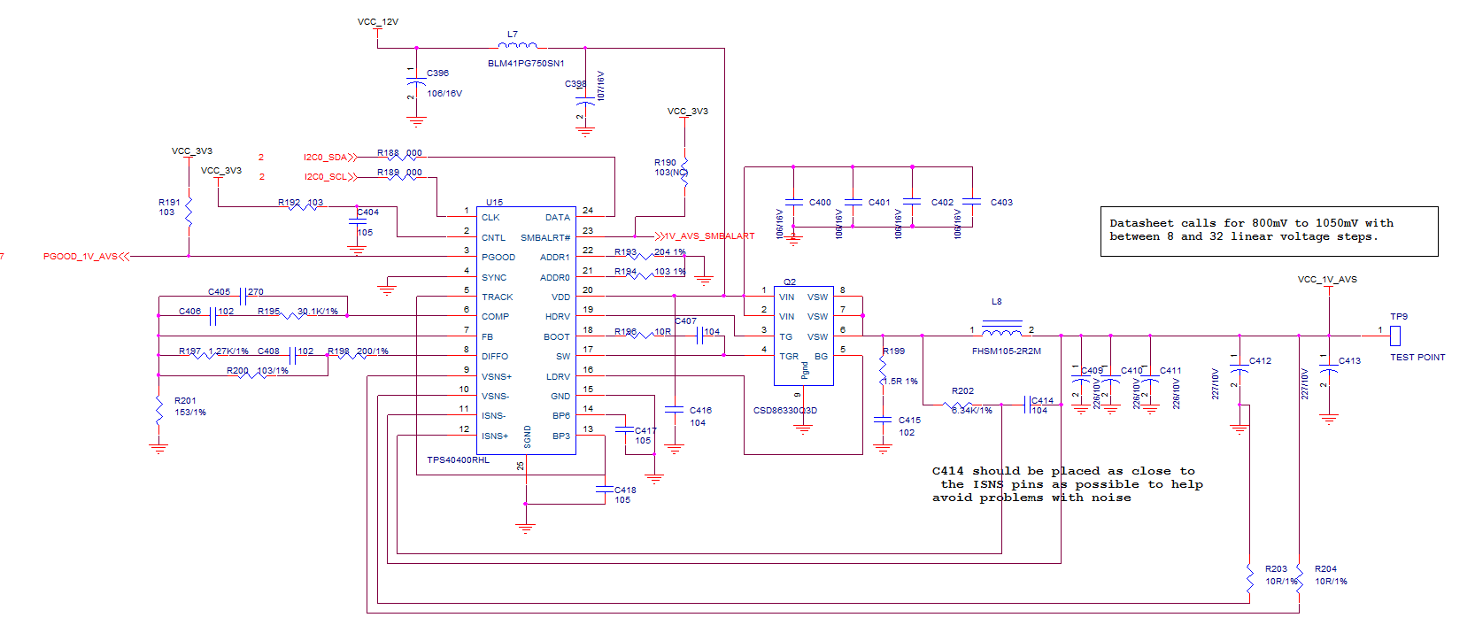 大家好,我用的DCDC芯片是TPS40400RHL,12伏输入,1伏输出,具体原理图如下所示: