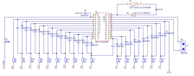 2、有问题芯片,仅从C17_PWR供电50V的情况下,COUT输出高电平7V,DOUT输出低电平。工作正常的芯片,两个脚都输出低电平。
