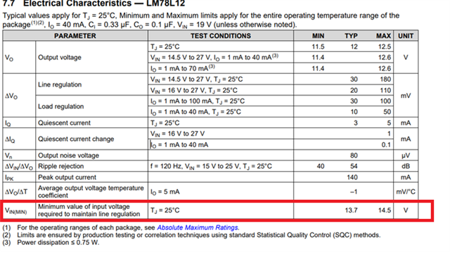 我的应用场景,是一个12V电池供电的电机类产品,我需要给电机的MOS管驱动电路一个12V的驱动电压(15MA),所以我选择了使用一个78L12 LDO芯片,但是由于是电池供电的,电池的电压会掉落到最低9V左右,那么这个时候,78L12的芯片还能否正常工作,他的输出电压大概是多少