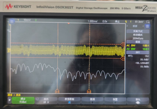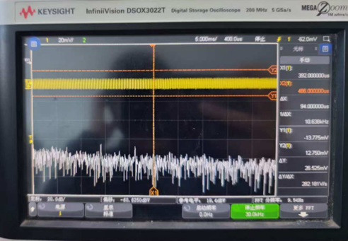 样机2为批量产品中测试发现的一台相噪很差的电源(如上图所示),只更换芯片后再测试相噪波形与样机1相似。