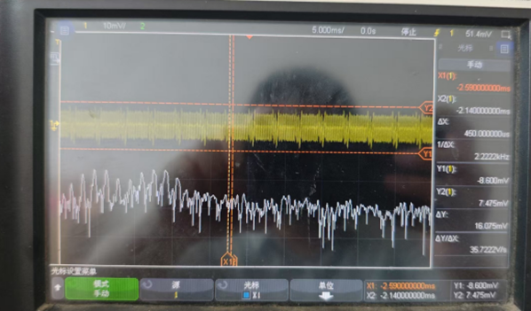 测试结果:波形上有低频成分较大,1kHz处相噪变差。