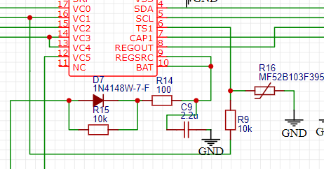 TS1和vss引脚间的压差会和热敏电阻的电压一起随温度变化,但寄存器的值不会变。