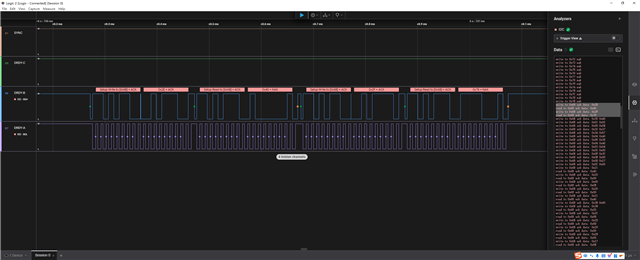 The logic analyzer shows that the transmission finished correctly as follows.