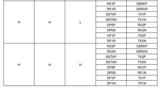 1.关于高速差分信号的通路配置,是否可以参考Table 4,比如当前配置的是0x0a - 0x03,FLIPSEL bit的0/1是否就对应Table 4中的FLIP pin高低状态?