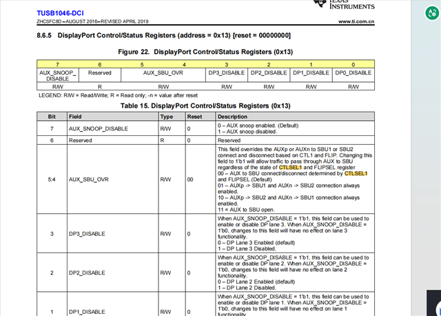 RE: TUSB1046-DCI: 如何配置