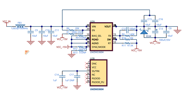 空载时-15V输出正常。但接负载后,输出负压变低。-17V@0.25A,-20V@0.5A。