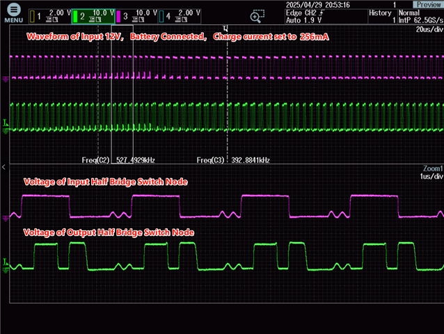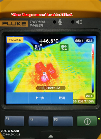 Then I measure the charge current to the barrery is 256mA indeed. ( My battery is 13V now. )