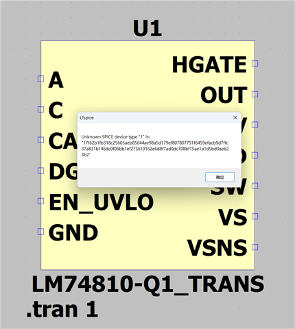 请使用PSPICE-FOR-TI打开LM74810-Q1 PSPICE Transient Model, 不支持LTSpice。。