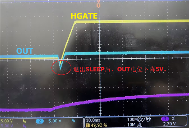 测试发现,负载电流30mA,负载电容1uF,退出SLEEP后,OUT电位会先掉电。这种情况属于正常现象吗?一般负载电流是不是应该很小,不会是mA级别的?在这种应用上需要注意什么吗?