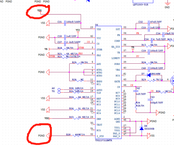 再用示波器查看了PGND与VDD波形,使用TL-SG2024MP与TPS23758/TPS23731接入后,VDD没有波形,使用TL-SG1005P,VDD可以正常上升到50V左右