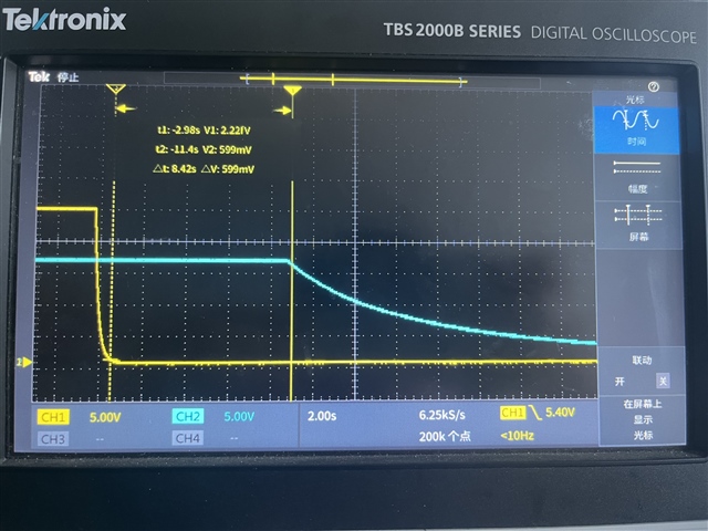 DC/DC,输入下电为0V,发现输出延迟8S才开始下电。下图是波形图和原理图。绿色为24V输入,黄色为输出电压,发现输入为零时,输出延迟8S才开始下电。