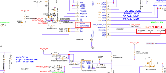 - The DC-DC outputs of 0.75/1.8/1.1V remain stable, regardless of whether the PMIC EN pin is pulled low or not.