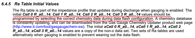 请参考 bq40z50-R2 Technical Reference Manual (Rev. B) “6.4.5 Ra Table Initial Values".