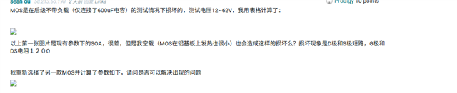 请分享MOSFET损坏的确切测试条件。请填写设计计算器以验证MOSFET SOA裕度