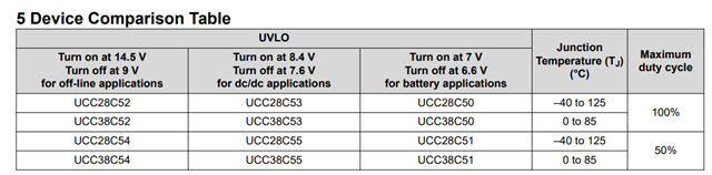 现在想在不改动辅源电路的情况下用UCC28C53替换UCC28C52试试,在芯片手册中只看到两款芯片在启动和关断电压上有区别,请问这两款芯片还有其他的不同点吗?