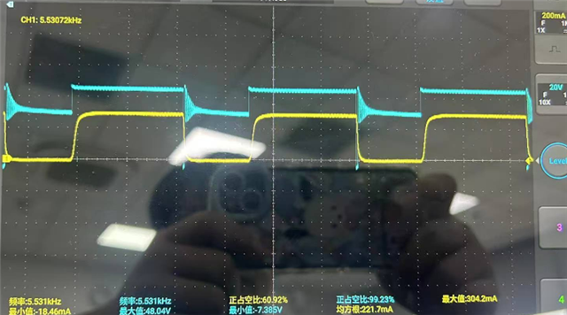 pwm-1k Hz (蓝色是sw电压,黄色是输出电流)