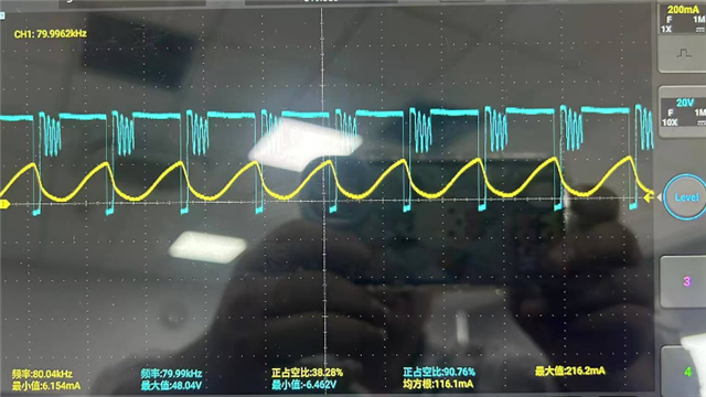 pwm-80k Hz (蓝色是sw电压,黄色是输出电流)