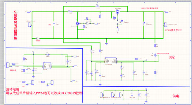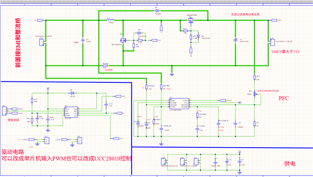 我使用了UCC28019的计算表格excel,来计算周围参数,并且为了让效率提高,我将BOOST DIODE换成了MOS管,再将DATE信号输入栅极驱动器让驱动器去驱动两个MOS管,构成同步boost电路,但是我发现我的UCC28019电路无法实现我设计的稳压效果。当输入交流电压改变的时候,直流电压也会发生改变。请问有人遇到过无法稳压的情况吗,该怎么解决呢