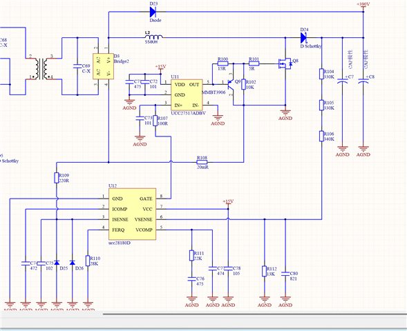 UCC28180: 参考TIDA-010081 设计了CCM PFC 电路,负载侧是三相桥式逆变电路,用于PMSM驱动控制,目标设计功率是1.5KW,目前在带负载测试时遇到控制不稳定情况