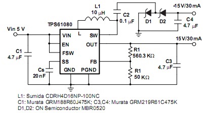 15V电压偏低,而负电压也不对,你可以降低一点负载看看? 过载而导致升压不到15V或者电感饱和电流不够,这样负电压也会不正常的。