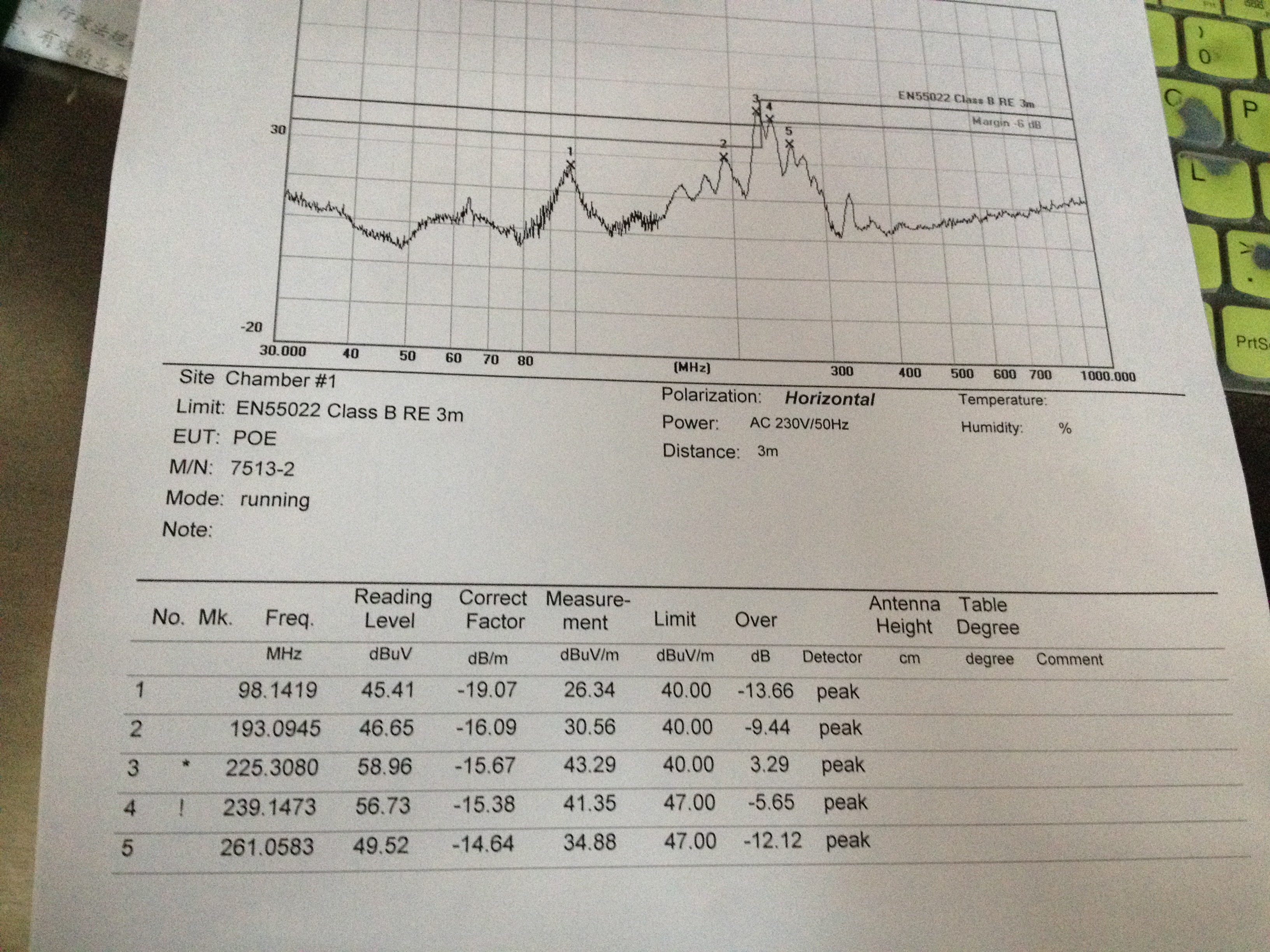 目前用TPS23754制作的poe电源, EMC测试不过,见下图,