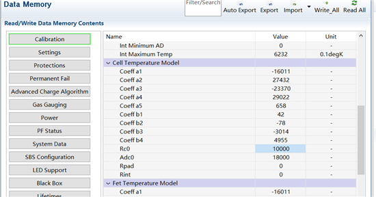 如果是用的TI推荐的10K A103T 的NTC电阻,可以不用改, 如果不是,请按照以上连接的工具,计算合适的Coeff ax , Coeff bx 修改即可。
