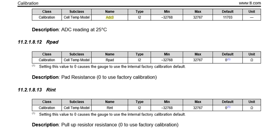 bq40z60 Bqstudio中的data memory---calibration---cell temerature model 中的rRc0 ,Adc0,Rpad,Rint什么意思值填多少??