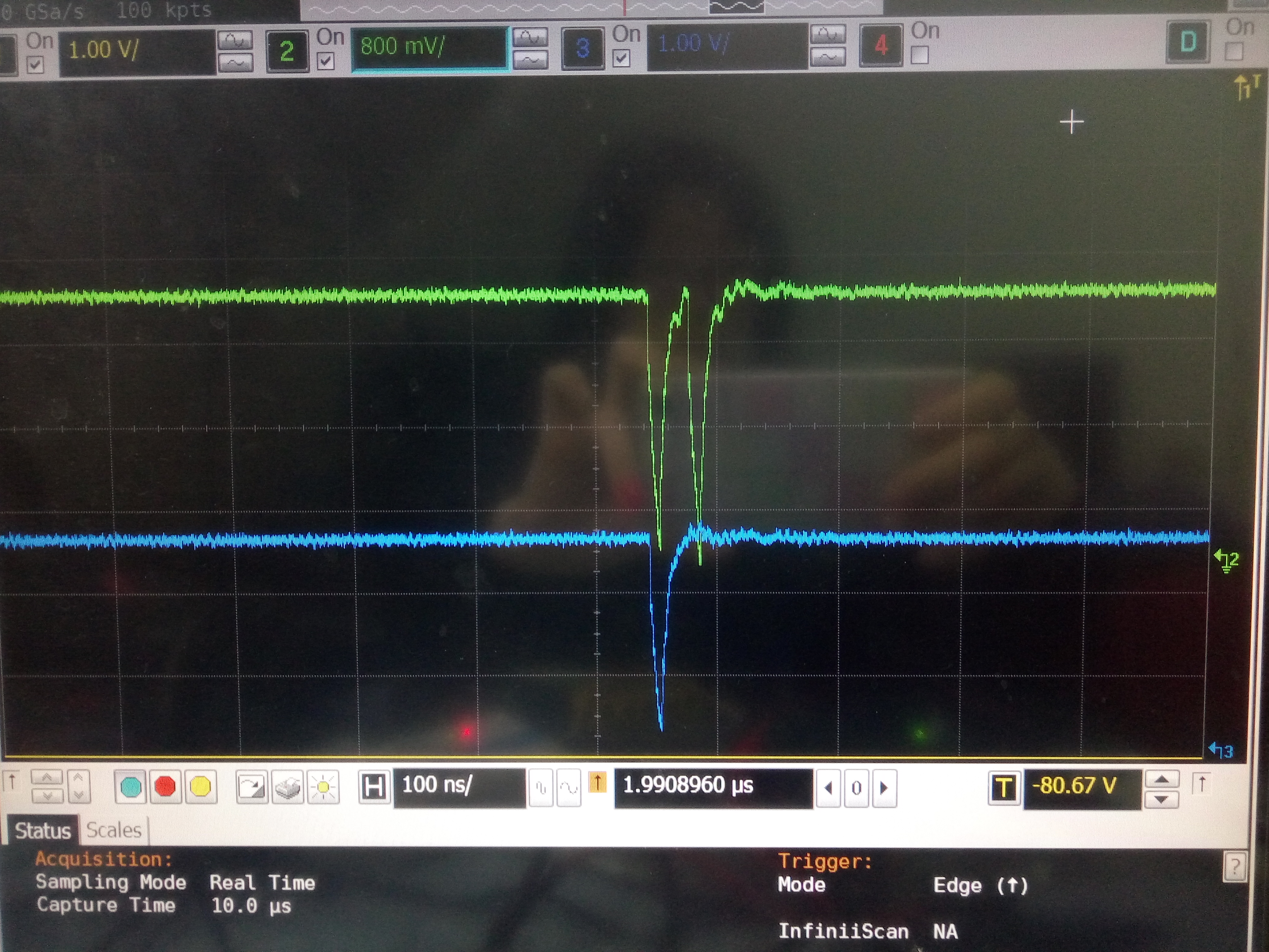 在配置EMIF异步时序(Flash)的时候发现,不进行写操作AWE也会按一定时序有效,不读AOE、ARE也会有效,这是怎么回事儿?不是按照异步读取的时序给定怎么回事儿?(如图上面是AOE,下面是AWE)