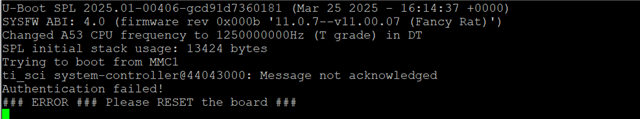 我调试过程中遇到过很多次这种错误,都和uboot的tiboot3.bin相关,感觉应该是个常规问题。