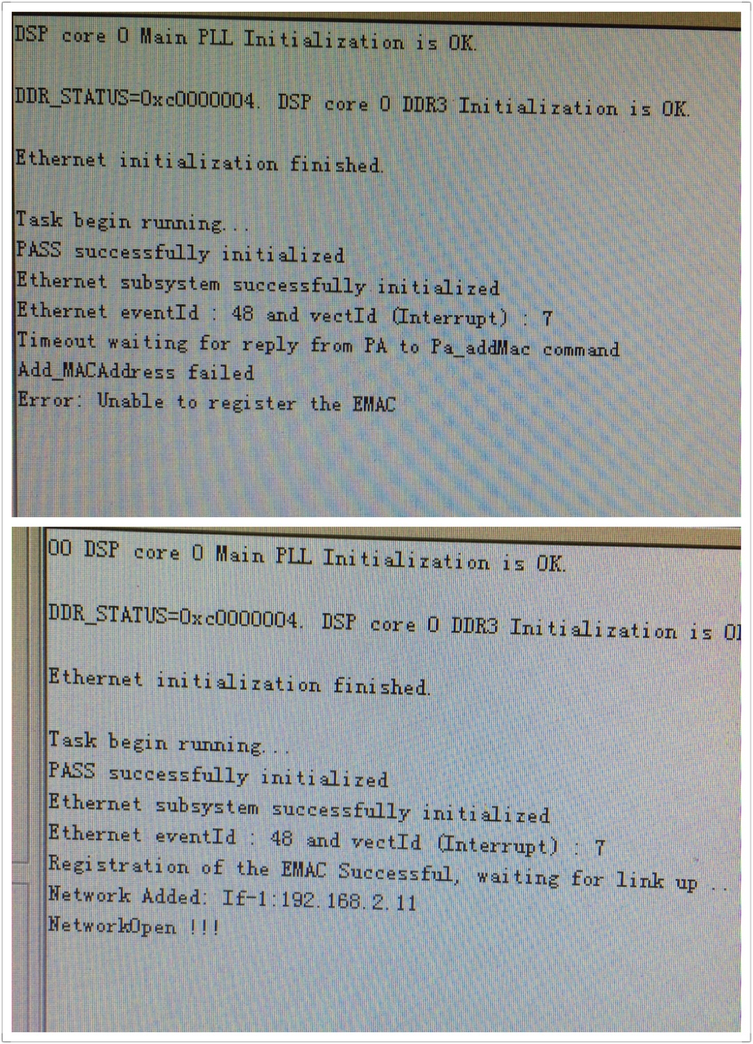 这是老问题了,主要是初始化时没有把一些状态复位,但是改起来还是相当麻烦的,建议你还是按一下reset,再加载时可以的。在ti的英文社区里有解决方案,我看了下,没试过,挺麻烦的
