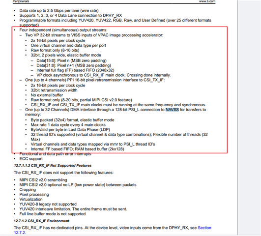 这里CSI_RX_IF三个独立可同时输出流VPAC、CSI_TX_IF、DMA-NAVSS