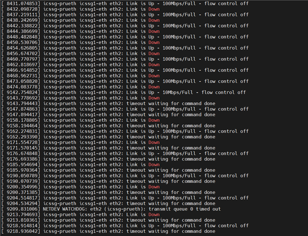 2.pru网口始终ping不通,但是网口的link up、link down都正常,内核缓冲区日志见附件log2.txtlog2.txt 。