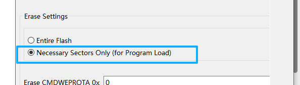 需要选择擦除部分设置,不能选择默认的擦除全部FLASH