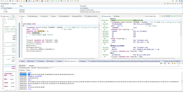 • Why can't my project Load Symbols Only debug jump to the main function, I set the main address through the pc register to jump to the main function, and the assembly code is different from the load program, is there a problem with the process of downloading my code to eeprom? Or is it a mistake in the process of chip startup carrying from eeprom to RAM?