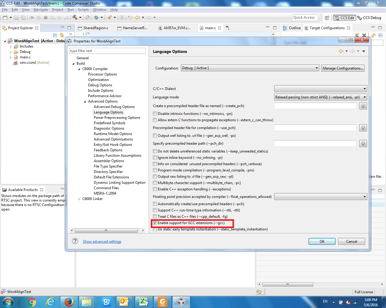 可以试一下打开编译器的GCC编译支持选项,具体位置见下图: