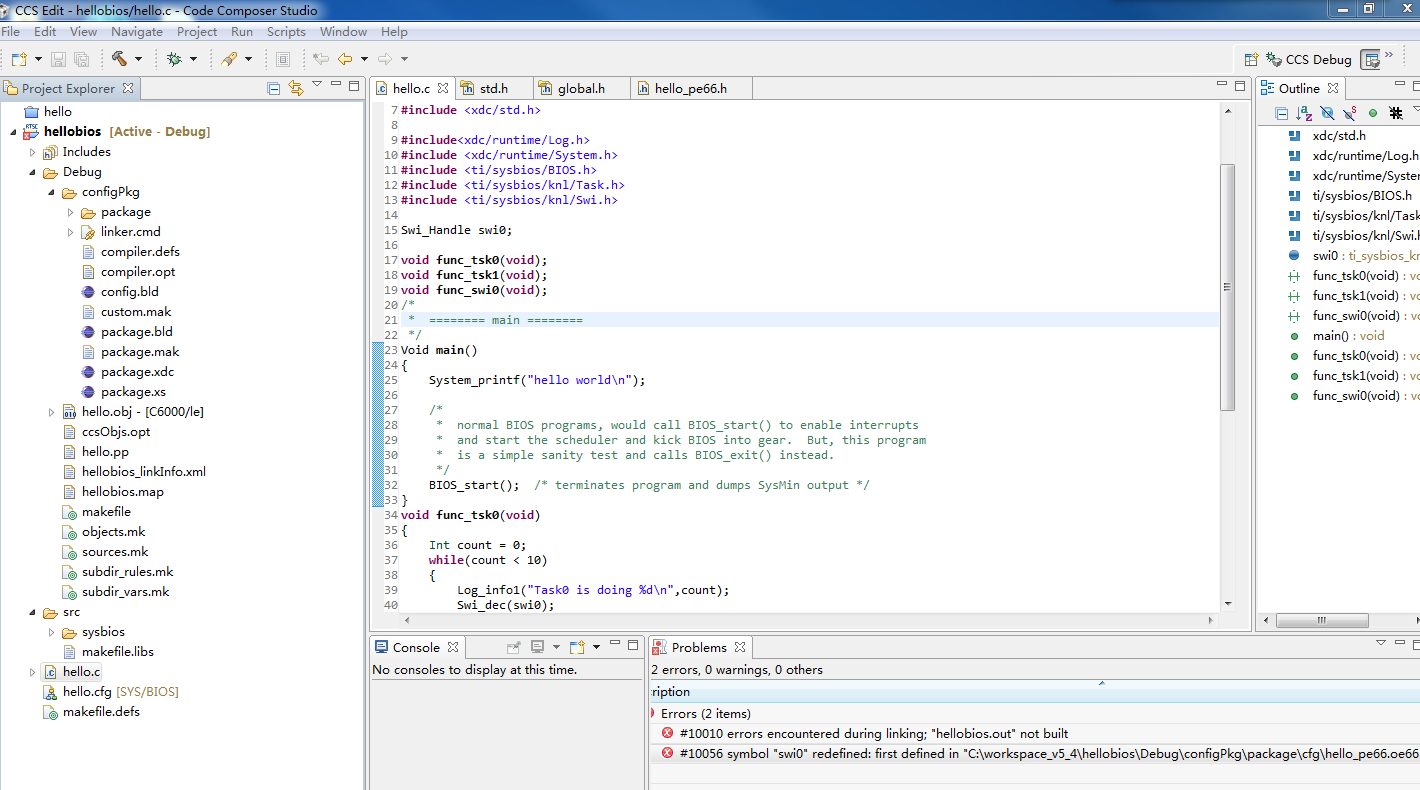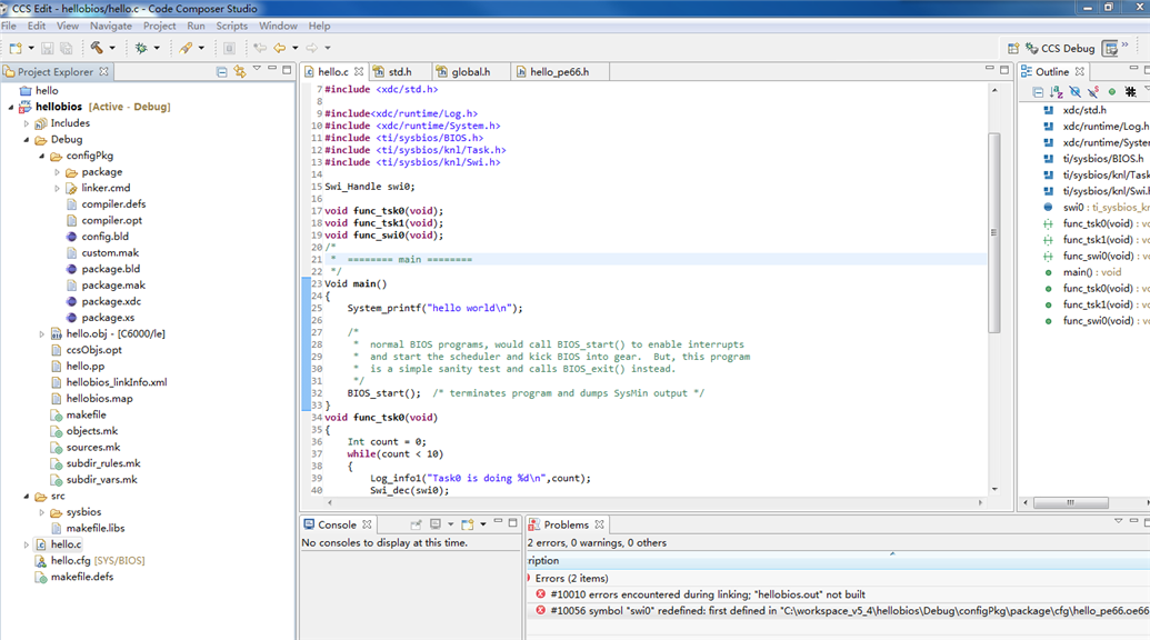我找到问题了 在Swi_Handle 忘了加extern........ 或者不用申明添加#include <xdc/cfg/global.h>也可以