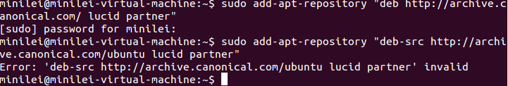 Error: "sudo add-apt-repository "deb-src http://archive.canonical.com/ubuntu lucid partner"invalid