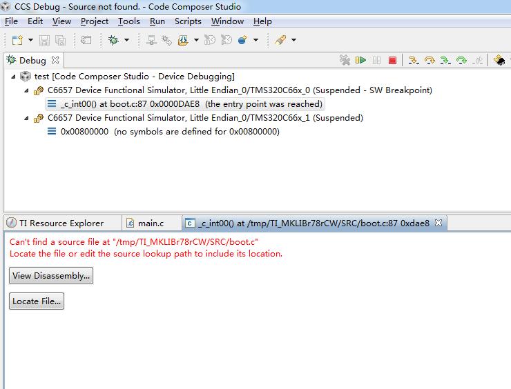 Can't find a source file at "/tmp/TI_MKLIBr78rCW/SRC/boot.c"