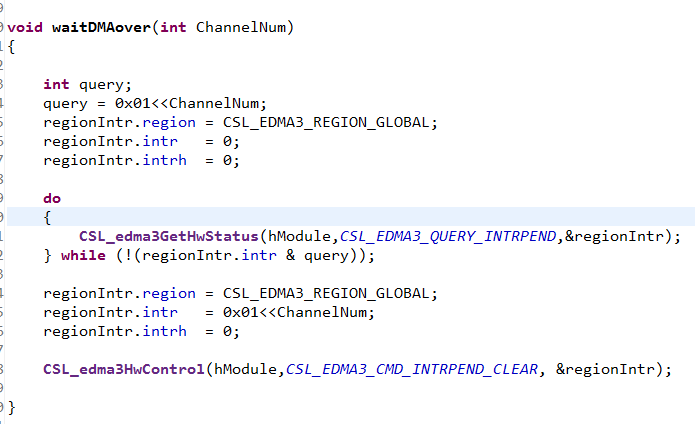 CSL_edma3HwControl(hModule,CSL_EDMA3_CMD_INTRPEND_CLEAR, ®ionIntr);
