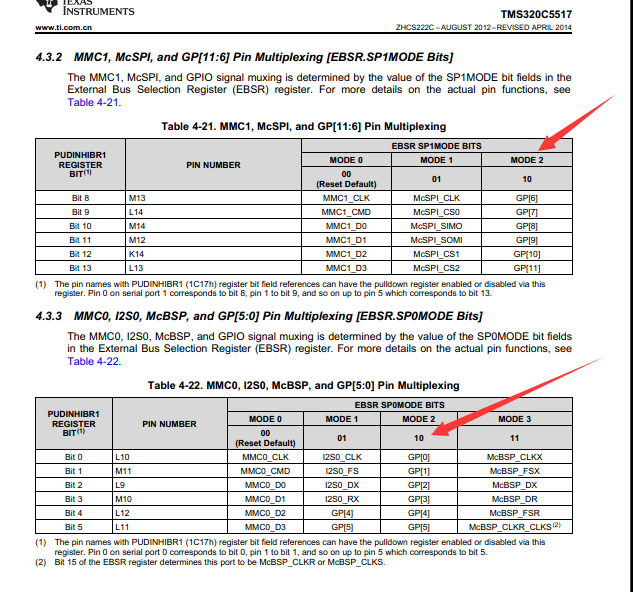 status = SYS_setEBSR(CSL_EBSR_FIELD_SP0MODE,CSL_EBSR_SP0MODE_2);