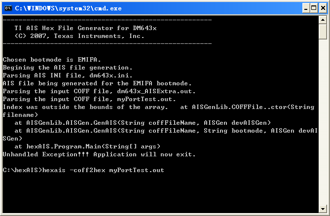 我用EVM 6437光盘里自带的Hex AIS 软件将out文件转换为hex文件时出错,如附件,DSP程序中有几个很大的数组22404*4byte,4276224*byte.请问如何解决这个问题?