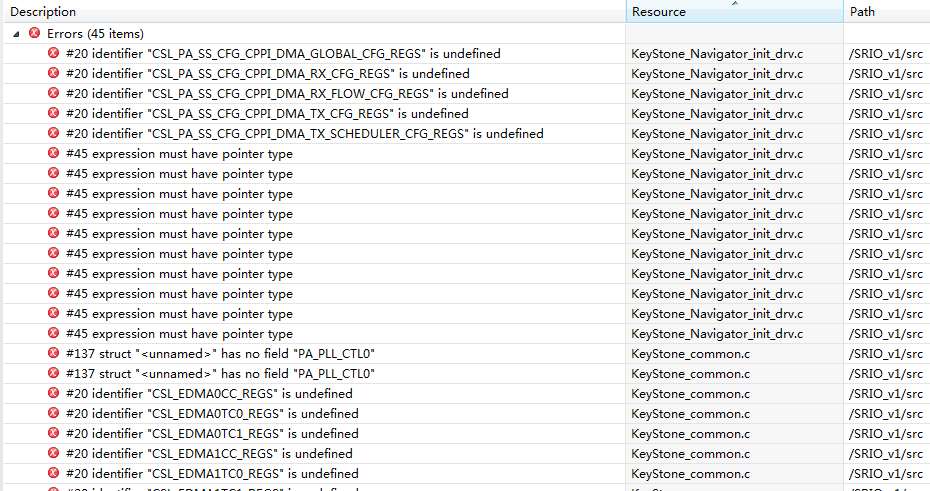 把例程里面SRIO的src文件以及common文件夹中的文件拷出放在新建的工程SRC目录下,编译后出现找不到变量定义的错误。求解答