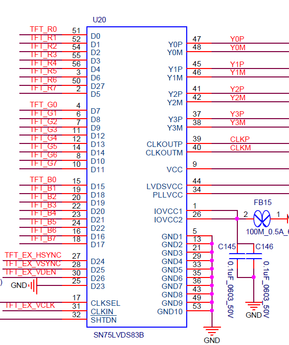 上面是电路图,我们用是RGB转LVDS的芯片,电路设计也参考了335x的勘误表,现在的问题就是在设置lcd参数时,如果配置bpp为24那么显示的效果与565几乎相同,都是颜色不正常。设置bpp为32时,颜色才是正常的。我们的linux版本是3.2.0.