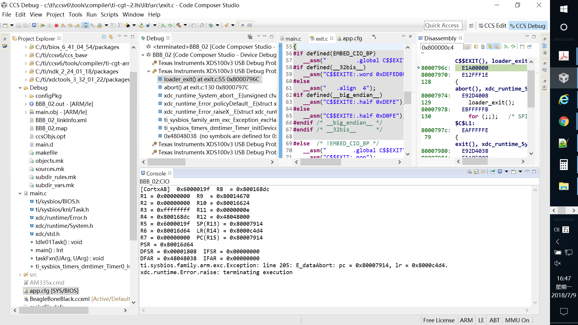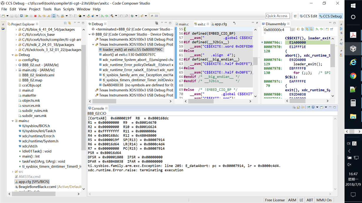 ti.sysbios.family.arm.exc.Exception: line 205: E_dataAbort: pc = 0x80007914, lr = 0x8000c4d4.