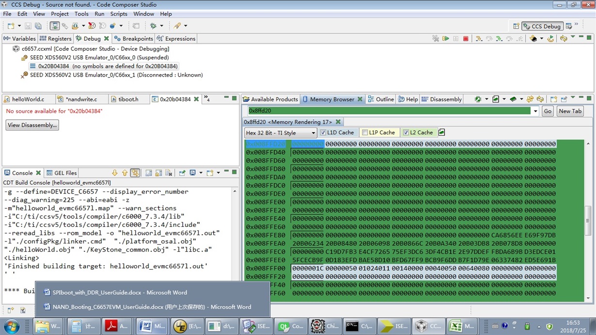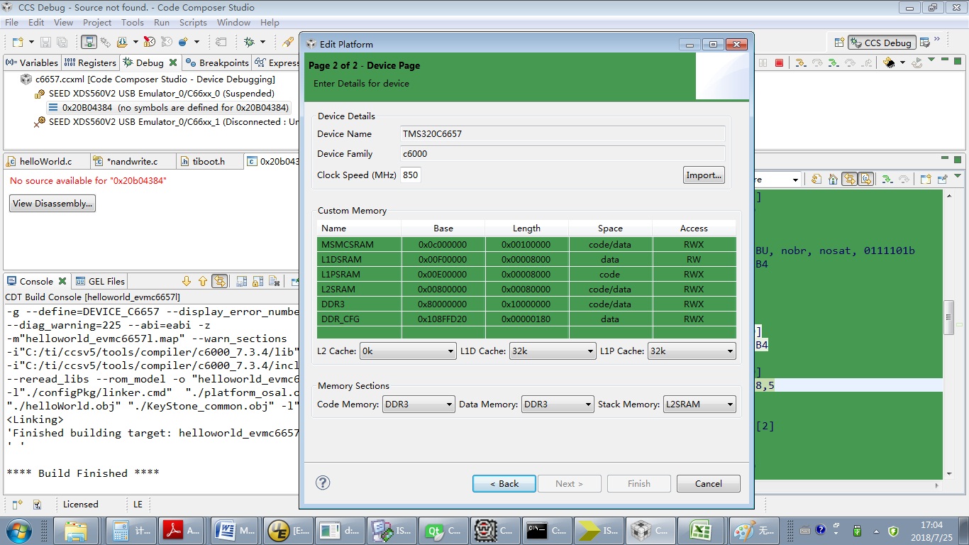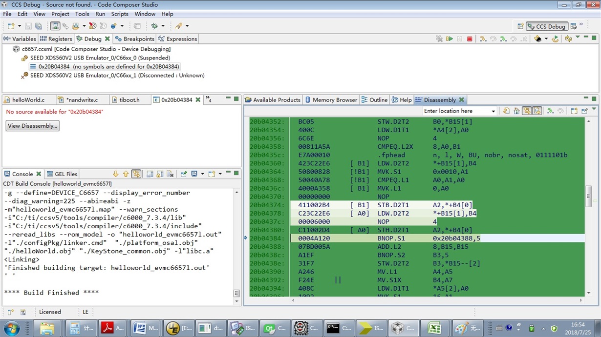 不带sysbios的加载成功,带sysbios按照例程添加了DDR Table,加载仍然失败。加载后停在如图位置: